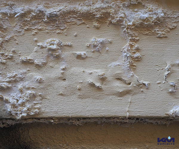- la formation de dépôts de salpêtre sous forme de cristaux blancs.